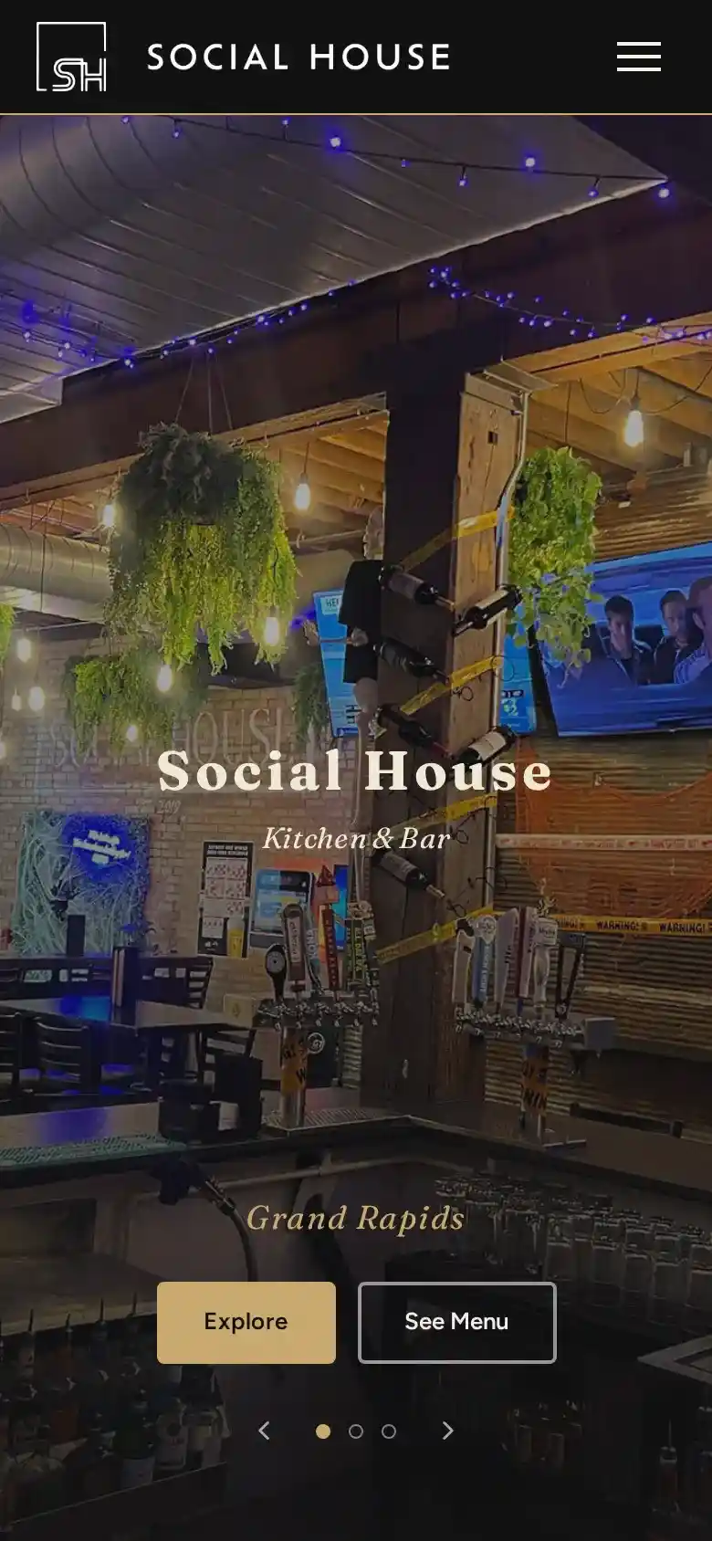 A multi-location restaurant group across Grand Rapids, Saranac, and Duke’s, unified under one magazine-dark editorial design. Full event calendar, an Instagram feed that pulls live from each location, and links out to the tools they use for ordering and reservations.