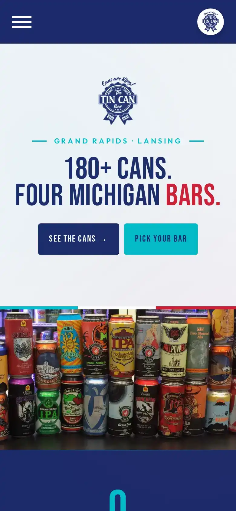 A 4-location Michigan craft can bar across Grand Rapids, Downtown Lansing, East Lansing, and Lansing West — each location gets its own schema markup, hours, and contact block, plus a shared Beer & Shot Tour punch card tracked in localStorage. Complete the tour, your name lands on the Wall of Fame.